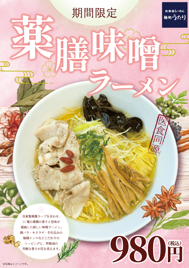 期間限定メニュー「薬膳味噌ラーメン」発売